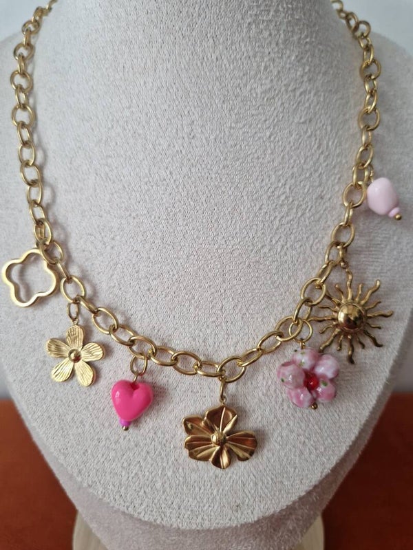 Collier breloque fleurs rose 🌸